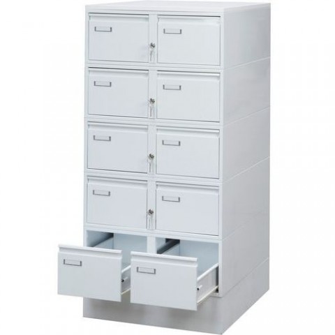 Kovové lístkovnice se soklem vhodné k ukládání karet ve formátu A5. Pevná konstrukce, v každé zásuvce dvě dělicí příčky. Uzamykání vždy dvou sousedních zásuvek.Dvouřadé kovové lístkovnice A5 Severn, 10 zásuvek