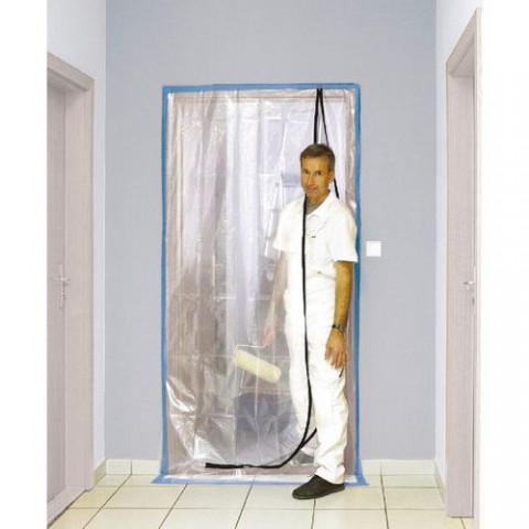 Materiál LDPE, průchod ve tvaru "L" se zipem.Fólie ochranná, do dveří, 100 µ, 115 x 220 cm