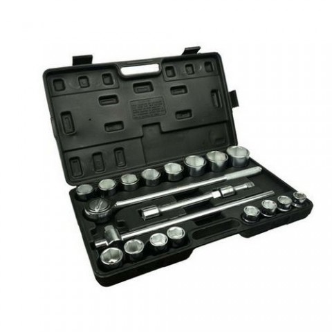 21 dílů Chrom vanadium Matný chrom V PVC kufru 16 x hlavice nástrčná 6ti hranná 19-21-22-23-24-26-27-30-32-34-36-38-41-46-48-50 1 x ráčna přepínací 1 x trhák 2 x prodloužení 100 - 200 mmGola sada 3/4 21ks, 19-50mm, šestihran GEKO