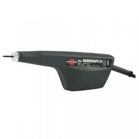 Gravírování kovů, plastů a skla. 50 vibrací jehly za sekundu. Hloubka obrábění se určuje pomocí systému šroubů s vroubky.Gravírovací pero Sinograph 25