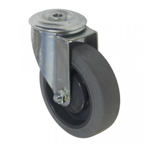 Přístrojová kola s gumovými obručemi. Určená pro méně náročný provoz. Disk proti namotávání vláken, pozinkovaná vidlice. Dvouřadý kuličkový věnec ve vidlicové hlavě. typ kol: otočná materiál kol: guma průměr kola: 80 - 125 mm šířka kola: 32 mm nosnost: 120 - 150 kg způsob uchycení: vidlice se středovým otvorem průměr středového otvoru: 12,3 mm výška kola s vidlicí: 105 - 156 mm vyložení kola: 38 - 41 mm ložiska: valivá (kuličková) disk proti namotávání vláken, povrchová úprava pozinkováním, dvouřadý kuličkový věnec ve vidlicové hlavěGumová přístrojová kola se středovým otvorem, průměr 80 - 125 mm, otočná, valivá ložiska