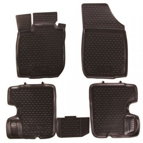 Koberce jsou vyrobeny přesně podle tvaru podlahových ploch konkrétního typu vozidla. Koberce jsou snadno omyvatelné, s rychlou možností vysypání nečistot a snadnou instalací. Vysoce odolná pryž zajišťuje kobercům vysokou pružnost, která zabezpečí při ohýbání (např. při skladování), že se koberce roztáhnou opět do původního tvaru. Výhodou těchto koberců je zvýšený okraj, chránící interiér interiéru vozidla před vysypáním sypkých materiálů či vylitím tekutin, apod. do interiéru vozidla, s odolností vůči prosáknutí olejů, benzínu a částečně také vůči elektrolytu z akumulátorů. Nepříjemnému posunu koberců po podlaze vozidla či shrnování pod pedály účinně zamezí speciální protiskluzové tvarování na spodní straně koberců, které se snadno přichytí k originálnímu čalounění podlahových prostorů.Gumové koberce Renault Sandero, 2010-08/2018 SIXTOL