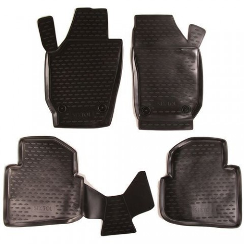 Koberce jsou vyrobeny přesně podle tvaru podlahových ploch konkrétního typu vozidla. Odpadá tak složité porovnávání mnohdy nepřesných univerzálních koberců a nutnost problematického zastřihávání do požadovaného tvaru. Koberce jsou snadno omyvatelné, s rychlou možností vysypání nečistot a snadnou instalací. Vysoce odolná pryž zajišťuje kobercům vysokou pružnost, která zabezpečí při ohýbání (např. při skladování), že se koberce roztáhnou opět do původního tvaru. Výhodou těchto koberců je zvýšený okraj, chránící interiér interiéru vozidla před vysypáním sypkých materiálů (písek, hlína) či vylitím tekutin (voda), nečistot, prachu, sněhu apod. do interiéru vozidla, s odolností vůči prosáknutí olejů, benzínu a částečně také vůči elektrolytu z akumulátorů. Nepříjemnému posunu koberců po podlaze vozidla či shrnování pod pedály účinně zamezí speciální protiskluzové tvarování na spodní straně koberců, které se snadno přichytí k originálnímu čalounění podlahových prostorů. Koberce jsou snadno omyGumové koberce Škoda Roomster 06/2006- SIXTOL