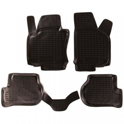 Koberce jsou vyrobeny přesně podle tvaru podlahových ploch konkrétního typu vozidla. Koberce jsou snadno omyvatelné, s rychlou možností vysypání nečistot a snadnou instalací. Vysoce odolná pryž zajišťuje kobercům vysokou pružnost, která zabezpečí při ohýbání (např. při skladování), že se koberce roztáhnou opět do původního tvaru. Výhodou těchto koberců je zvýšený okraj, chránící interiér interiéru vozidla před vysypáním sypkých materiálů či vylitím tekutin, apod. do interiéru vozidla, s odolností vůči prosáknutí olejů, benzínu a částečně také vůči elektrolytu z akumulátorů. Nepříjemnému posunu koberců po podlaze vozidla či shrnování pod pedály účinně zamezí speciální protiskluzové tvarování na spodní straně koberců, které se snadno přichytí k originálnímu čalounění podlahových prostorů.Gumové koberce Volkswagen Jetta, 2005-2010 SIXTOL