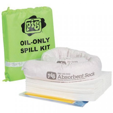 Malá sada sorbentů určených k likvidaci olejů a ropných produktů. Baleno v zeleném pytli s reflexním pruhem.Havarijní souprava Pig, olejová, sorpční kapacita 11 l