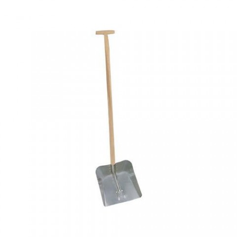 Hliníková lopata s dřevěnou násadou ve tvaru T o průměru 2,5 cm.Hliníková lopata s dřevěnou násadou, šířka 35 cm