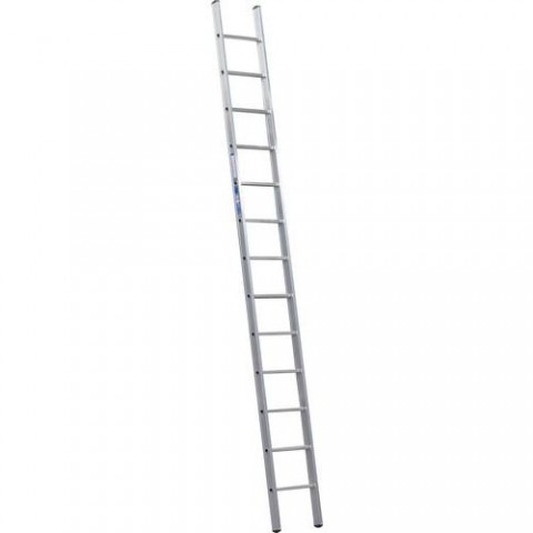 Jednoduchý opěrný žebřík z hliníku se 13 příčkami, vhodný pro profesionální použití. Žebřík je opatřen protiskluzovými patkami. Zesílené příčky s bezpečnostním vroubkovaným povrchem. Splňuje normu ČSN EN 131 a je opatřen TÜV certifikátem.Hliníkový žebřík PROFI, 13 příček
