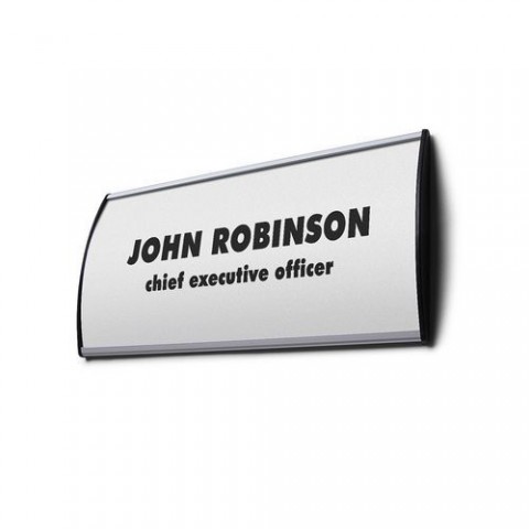 Informační zaoblené dveřní tabulky Sign System Mojo pro umístění jmenovky a jiných informací. Rám je vyroben z hliníku a pevného plastu. Informa??ní štítek chrání antireflexní UV fólie. Tabulku lze upevnit šrouby na zeď nebo lepícími polštářky na dveře.Informační dveřní tabulky Sign System Mojo