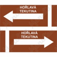 Bezpečnostní značení tabulkou, značkou nebo samolepkou "Značení potrubí - Hořlavá tekutina" tiskneme na vysoce kvalitním materiálu, barvami s vysokou odolností proti otěru a UV záření. Tím zajišťujeme splnění požadavků Nařízení vlády č. 375/2017 Sb., ČSN ISO 3864-1, ČSN ISO 3864-2, ČSN ISO 3864-3, ČSN ISO 3864-4. Samolepka k značení potrubí. Pro průměr potrubí od 2 cm do 60 cm.Informační tabulky - Hořlavá tekutina