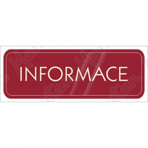 Tabulky, značky a samolepky "Informace" jsou tištěny na vysoce kvalitním materiálu, barvami s vysokou odolností proti otěru a UV záření. Provedení je plně v souladu s požadavky právních a technických předpisů, zejména Nařízení vlády č. 375/2017 Sb., ČSN ISO 3864-1, ČSN ISO 3864-2, ČSN ISO 3864-3, ČSN ISO 3864-4.Informační tabulky - Informace