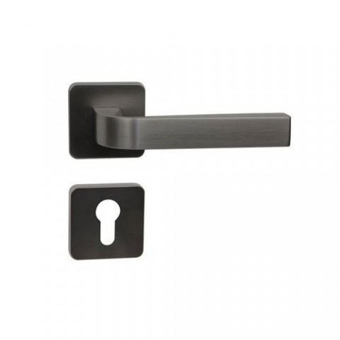 Zamakové kování na čtvercových rozetách s vratnou pružinou klik. Použitý materiál vykazuje vysokou pevnost a odolnost povrchu proti opotřebení. Přesné opracování hran.Interiérová kování Roma.PZ