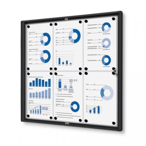 Uzamykatelná korková vitrína nabízí jednoduchý způsob prezentace informací. Korková zadní deska je ideální pro připnutí dokumentů či oznámení. Odolné akrylátové čelo chrání obsah před nečistotami. Perfektní pro kanceláře, školy i veřejné chodby.Interiérová vitrína Economy, plechová záda, černá