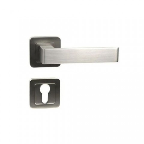 Zamakové kování na čtvercových rozetách s vratnou pružinou klik. Použitý materiál vykazuje vysokou pevnost a odolnost povrchu proti opotřebení. Přesné opracování hran.Interiérové kování Milano.PZ, nikl matný broušený