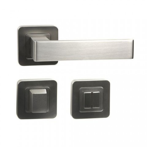 Zamakové kování na čtvercových rozetách s vratnou pružinou klik. Použitý materiál vykazuje vysokou pevnost a odolnost povrchu proti opotřebení. Přesné opracování hran.Interiérové kování Milano.WC, nikl matný broušený