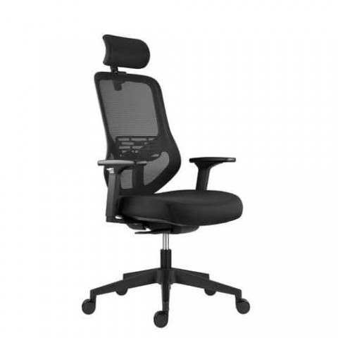 Kancelářská židle Atomic s vysokým prodyšným opěrákem a čalouněným sedákem a podhlavníkem. Pohodlný sedák s nastavitelnou hloubkou a s výškou čalounu 90 mm. Pětiramenný nylonový černý kříž s dostatečně širokou základnou pro maximální stabilitu a oporu. Výškově a hloubkově stavitelná bederní opěrka. Nastavení bederní opěrky do výšky v rozpětí 75 mm a do hloubky v rozpětí 20 mm. Záhlavník s nastavením výšky a náklonu. Nastavení výšky opěrky v rozpětí 55 mm. 3D výškově, úhlově a podélně nastavitelné područky s měkkou dotykovou plochou. Výška područek od podlahy je v rozmezí 62 - 77,5 cm. Synchronní mechanismus s aretací ve 4 pozicích a automatickým nastavením tuhosti houpání podle hmotnosti uživatele. Kolečka O60 mm s gumovou obručí pro všechny typy podlah. Certifikace: ROHS, REACH, PAHS, BIFMA EN 1335 standard. Celková výška židle: 114,5 - 127,5 cm. Složení potahové látky a síťoviny: 100% polyester.Kacelářská židle Atomic, černá