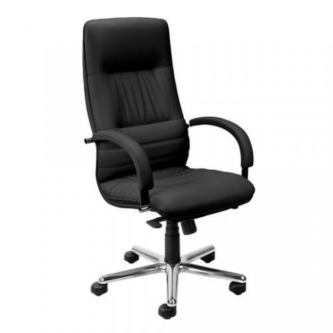 Kancelářská křesla Linea vynikají ergonomicky tvarovanou skořepinou s bederní opěrkou a čalouněním v pravé kůži. Pevné chromované područky jsou čalouněny kůží a vyplněny měkkým plastem pro co nejpohodlnější sezení. Židle disponují houpacím mechanismem s možností aretace v pěti polohách i nastavitelnou výškou sedu plynovým pístem. Stabilitu zaručuje chromovaný ocelový kříž. Kolečka jsou vhodná pro měkké podlahové krytiny. Doporučená doba používání 8 h. Částečně zkompletováno.Kancelářská křesla Linea