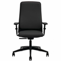 Kancelářská židle s polstrovaným sedákem a opěradlem. Synchronní mechanismus. Individuální nastavení hloubky sedáku se sklonem přibližně 5°.Kancelářská židle Interstuhl 152II, černá