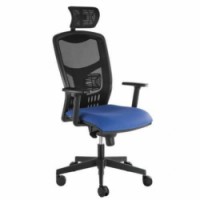 Moderní čalouněné kancelářské křeslo se synchronním mechanismem s možností nastavení síly protiváhy a aretace v pěti pozicích. Sedák je potažený látkou "Cura" s vysokou odolností až 100 000 cyklů. Velký pětiramenný nylonový kříž s koly pro měkké podlahy. Předností kancelářské židle je prodyšné ergonomické opěradlo s výškově nastavitelnou bederní opěrkou. Součástí je výškově a úhlově nastavitelný podhlavník z prodyšné síťoviny. Pohodlí zvyšují výškově nastavitelné polyuretanové područky.Kancelářská židle Mary II Nature
