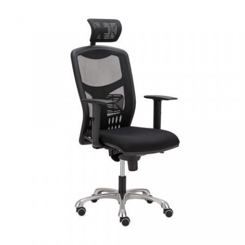 Moderní kancelářská židle se synchronním mechanismem. Vysoká nosnost a pogumovaná kolečka. Prodyšná opěradlo ze síťoviny a plný textilní sedák. Robustní leštěný hliníkový kříž a výškově stavitelné područky v rozmězí až 18 cm.Kancelářská židle Mary II Verda, černá