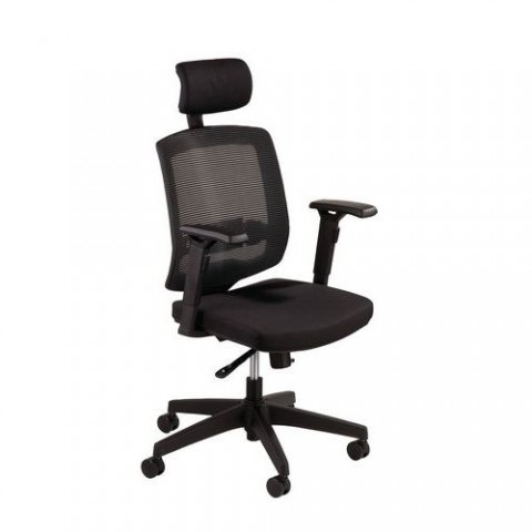 Kancelářská židle s multifunkční synchronní mechanikou pro pohodlné sezení nejen u počítače. Područky kancelářského křesla jsou výškově stavitelné ve třech pozicích. Nastavitelná opěrka hlavy a beder a moderní síťové čalounění opěradla zaručují vysoký komfort sezení. barva sedáku: černá barva opěradla: černá barva konstrukce: černá materiál sedáku: textil materiál opěradla: síťovina materiál kříže: plast materiál područek: plast mechanika: synchronní, bederní opěrka nosnost: 130 kg rozměry sedáku š x h: 48 x 44 cm výška sedáku: 41 - 50 cm výška opěradla: 65 cm područky: ano typ područek: výškově nastavitelné odolnost: standardní (40 000 cyklů) hmotnost: 14 kg výškově stavitelná opěrka hlavy, regulace tlaku protiváhy, područky z polyuretanu, černý plastový kříž, dodáváno v rozloženém stavuKancelářská židle Maxi