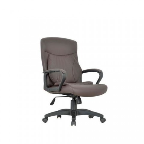 Kancelářské křeslo s houpací mechanikou s ergonomickým tvarovaným sedákem a opěradlem pro maximální komfort. Sedák i opěradlo jsou potažené polyuretanovým potahem (koženka) v hnědé barvě. Skořepina křesla z dřevěné překližky. Pevné područky s čalouněním.Kancelářská židle Opra