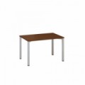Kancelářské stoly v moderním designu. Deska stolu z laminované dřevotřísky tl. 25 mm a ABS hranami 2 mm. Čtyřnohé podnoží s ocelovou konstrukcí do kříže ošetřené práškovou barvou, jehož bočnice jsou spojeny hliníkovými profily, podpírají desku stolu a přináší tuhost stolu. Dezén desky z divoké hrušky, třešně, buku, ořechu nebo bílé barvy. Dodáváno v demontovaném stavu.Rovné kancelářské stoly Alfa 200, 120 x 80 x 74,2 cm, rovné provedení