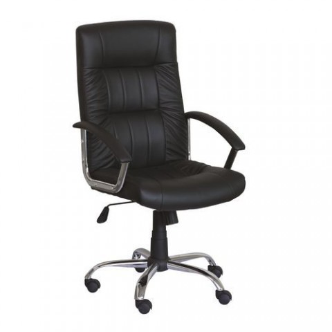 Manažerské křeslo Zoe zaujme především svým moderním designem a ergonomií. Dotykové části křesla jsou čalouněny pravou kůží. O pohodlí sezení se stará houpací mechanika a polstrované područky. Nastavení výšky sedu pomocí plynového pístu. barva sedáku: černá barva opěradla: černá barva konstrukce: stříbrná materiál sedáku: kůže materiál opěradla: kůže materiál kříže: chromovaná ocel materiál područek: kůže/chromovaná ocel mechanika: houpací nosnost: 100 kg rozměry sedáku š x h: 49 x 50 cm výška sedáku: 46 - 53 cm výška opěradla: 68 cm područky: ano typ područek: pevné Šířka sedáku včetně područek 64 cm.Kancelářské křeslo Zoe