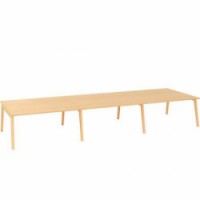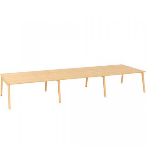 Kancelářské stoly s dřevěným podnožím v moderním designu. Podnoží vyrobené z masivního dřeva jasanu se zápustnými maticemi, z tohoto důvodu se kresba a odstín dřeviny mohou lišit. Kovové části podnoží jsou ošetřené práškovou epoxy-polyesterovou bílou barvou RAL 9010. Stolová deska z laminované dřevotřísky s tloušťkou 25 mm a ABS hranami 2 mm. Možný výběr desky z dezénu buk nebo bílá. Dodáváno ve demontovaném stavu.Kancelářské stoly Bench Alfa Root, 480 x 160 x 74,2 cm
