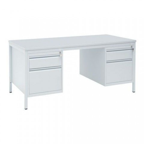 Kovový stůl se dvěma dvouzásuvkovými kontejnery. Zásuvky lze plně vysunout. Rám z kovových profilů je povrchově upraven práškovou barvou. barva desky: světle šedá rozměry desky d x h: 160 x 80 cm výška stolu: 76 cm provedení: rovné materiál desky: laminovaná dřevotříska, tl. 18 mm materiál podnoží: ocelové trubky, tl. 1,5 mm barva kontejneru: světle šedá RAL 7035 barva podnoží: světle šedá RAL 7035 počet kontejnerů: 2 rozměry kontejneru v x š x h: 53 x 46,1 x 60 cm počet zásuvek kontejneru: pravý 2; levý 2 dodáváno v demontovaném stavu (spojovací materiál součástí balení) snadná montážKancelářský stůl se dvěma kontejnery Basic, 160 x 80 x 76 cm, rovné provedení