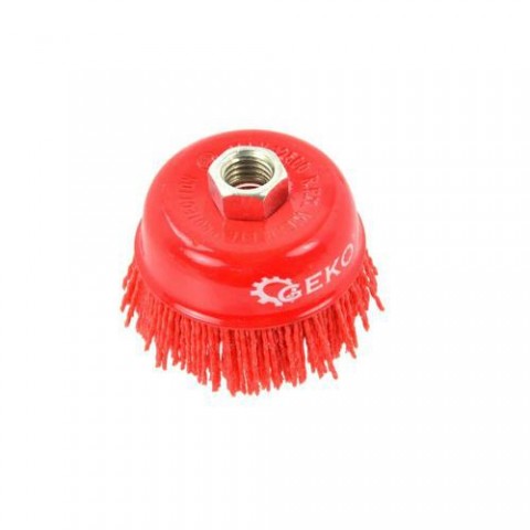 Kvalitní kartáč z vysoce kvalitního nylonu určený pro odstranění starých nátěrů, laků, rezu, otřepů apod. Ideální pro renovační práce, čištění kovových povrchů, odstranění starých nátěrů, laků, rezu, otřepů apod. Namontovaný na závitu M14 (standardní úhlová bruska). Vyrobené z vysoce kvalitního nylonu. Ocelové pouzdro. Maximální otáčky 12500 ot / min.Kartáč hrnkový, 75mm GEKO