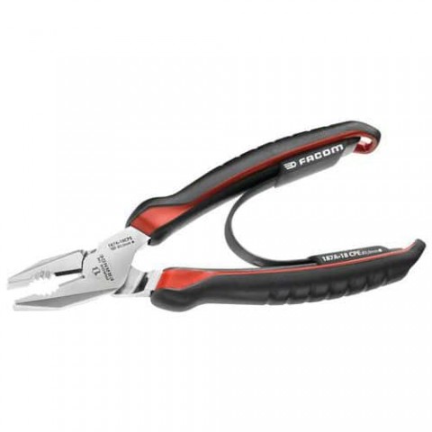 Vysoce odolné kombinované kleště s břity pro všechny typy drátů. Ergonomické rukojeti z dvojího materiálu odolné vůči chemickým látkám. Širší a plošší rukojeti s odnímatelnou vratnou pružinou a poutkem. Vysoký výkon díky poloze nýtu a čelistí.Kleště kombinované Facom
