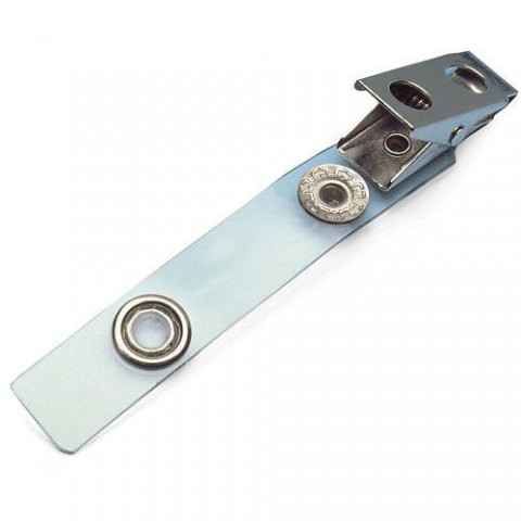 Kovový klips pro uchycení visačky s předděrovaným oválným otvorem. Čirá plastová šle otočná o 360°.Klips americký