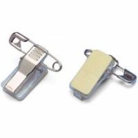 Kovový krokodýlek s pojistným špendlíkem se samolepící zadní stranou.Klips samolepící