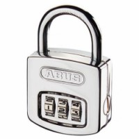 Vysoce kvalitní visací zámek s měnitelnou číselnou kombinací. Kalený ocelový třmen. Dvojitý zámek. Tělo a třmen s atraktivní chromovanou povrchovou úpravou.Kombinační visací zámky Abus 160