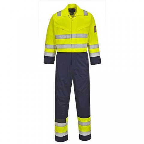 Dvoubarevná modakrylová tkanina spolu s reflexními proužky poskytuje uživateli vynikající viditelnost a plnou ochranu v nebezpečných situacích. Zdokonalený design splňuje přísné požadavky na ochranu před elektrickým obloukem. Zádový sklad Zadní kapsa CE certifikace Smyčka na radiostanici Kapsa na metr Trojité švy Dvoucestný přední mosazný zip Nastavitelné manžety na suchý zip ARC2 5XL Nehořlavá páska pro průmyslové praní Elastické v bocích 8 kapes Ochrana proti sálavému konvekčnímu a kontaktnímu teplu Přirozeně nehořlavé vlastnosti i po opakovaném praní Kapsy na kolenní vložky Ochrana před svařováním třídy 2 CE-KAT III Vzor pásky Bio motion ** Sklad s EN 13034 na začátku roku 2020 **Kombinéza Hi-Vis MODAFLAME, modrá/žlutá
