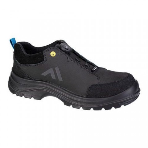Tato obuv má tepelně odolnou podrážku, ESD vlastnosti a vynikající protiskluznost. Je vyrobena s inovativním drátěným systémem šněrování pro rychlejší šněrování a rychlé uvolnění. Kompozitní tužinka a kompozitová mezipodešev proti proražení. Kompozitní špička Kompositová stélka odolná proti propíchnutí Vhodné pro použití v prostředí ESD Antistatická obuv Podešev odolná vůči palivu a oleji Voděodolný svršek zabraňující pronikání vody Oblast paty absorbující energii Podešev s dvojitou hustotou Protiskluzová podešev Skvěle polstrované pohodlné vložky do bot snižující únavu nohou CE certifikaceKompozitní nízká obuv Ridge S3S ESD SR FO, černá/modrá