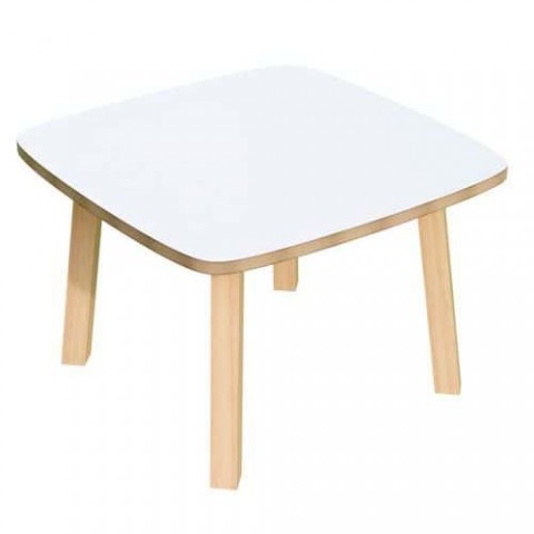 Nízký stolek se švédským designem. Podnoží z masivního dřeva.Konferenční nízké stolky Paperflow Woody, 60 x 60 x 40 cm