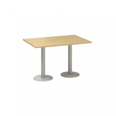 Jednací stoly Alfa 400 v pěti barevných provedeních. Konferenční stoly této řady systémově navazují na kancelářské stoly Alfa a doplňují je. Desky stolu jsou vyrobeny z laminované dřevotřísky tloušťky 25 mm s ABS hranou 2 mm. Podnoží v šedostříbrné barvě se skládá z kruhových ocelových desek a svislých nohou, které jsou v horní části opatřeny nosným křížem, zajišťujícím přímou podporu stolové desky. Díky povrchové úpravě epoxy-polyesterovou barvou se podnoží vyznačuje vysokou odolností proti všem druhům poškození v běžném kancelářském provozu. Konferenční stoly splňují normy ISO9001, ISO14001, ČSN18001, Ekologicky šetrný výrobek.Konferenční stoly Alfa 400 s šedým podnožím, 120 x 80 x 74,2 cm