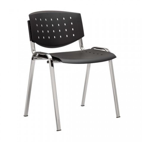 Konferenční židle Layer s perforovaným plastovým opěradlem a sedákem. Robustní ocelová kostra z 1,2 mm profilů s povrchovou úpravou chrom. Součástí jsou plastové šputny na spodní straně nohou. Díky svému provedení je židle nenáročná na údržbu a vhodná do zdravotnických zařízení. Možnost stohování.Konferenční židle Layer, černá