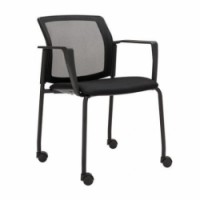 Konferenční židle Logos s výrazně tvarovaným opěrákem ze samonosné síťoviny a s kolečky. Židle je určena do interiéru a je pohodlná pro krátké i delší sezení. Součástí jsou plastové područky. Ocelová kostra v černém provedení s nosností až 140 kg. Možnost stohování.Konferenční židle Logos NET s kolečky, černá