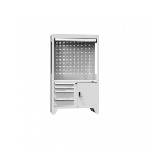 Systémová kontrolní pracoviště slouží k ochraně měřicích přístrojů, pomůcek, počítačů, provádění kontrolních činností a například také k archivaci protokolů. Bočnice pracovišť jsou tvořeny tvrzeným sklem a přední část je uzavíratelná pomocí hliníkové rolety s mechanickým navíjecím systémem. Roleta je zakončena hliníkovým madlem s integrovaným rozvorovým zámkem. Zadní strana vrchní části systémových pracovišť je perforovaná pro uchycení pracovních nástrojů. Otvory jsou čtvercového tvaru 10 x 10 mm s roztečí 38 mm. Ve spodní části kontrolních pracovišť jsou čtyři zásuvky o různých výškách a odvětrávaná skříňka na PC, tiskárnu a jiné přístroje. Celá pracoviště jsou uzamykatelná. výška pracovní plochy: 86,5 cm rozměry v x š x h: 203 x 120 x 60 cm materiál: ocelový plech tl. 1 - 1,5 mm nosnost: 700 kg počet polic: 1 ks počet zásuvek: 4 ks výška zásuvky: 2 x 10; 2 x 20 cm výsuv zásuvek: 100 % barva: šedá RAL 7035 barva dveří: šedá RAL 7035, modrá RAL 5012 hmotnost: 155 kg povrchová úprava prKontrolní pracoviště, 203 x 120 x 60 cm