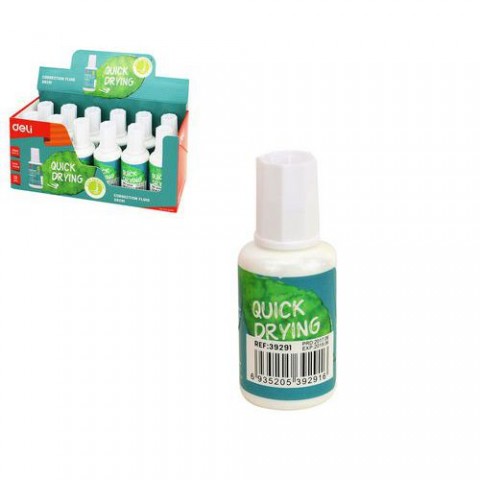 Rychleschnoucí bílý opravný lak s výbornými krycími vlastnostmi, vybavený měkkým nylonovým štětcem pro přesnou korekci. Štěteček udržujte čistý. Před použitím dobře protřepat, dokud se nepromíchá a nezačne hrkat kulička uvnitř. Vodou nesmývatelný, šetrný k přírodě.Korekční lak DELI 20ml, štěteček, 12ks