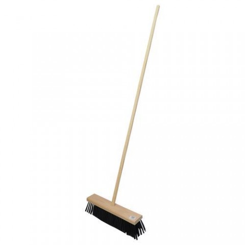 Koště silniční určený k zametání hrubších nečistot v exteriéru, na stavbách, dílnách apod.Koště silniční, s násadou
