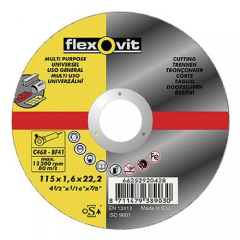 Kvalitní řezací kotouč pro řezání všech typů ocelových materiálů.Kotouč Flexovit, řezný, univerzální, profi
