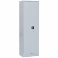 Univerzální uzamykatelná skříň ze svařovaného ocelového plechu. Uvnitř pět polic a šatní tyč. barva: šedá RAL 7035 barva dveří: šedá RAL 7035 rozměry v x š x h: 195 x 60 x 40 cm materiál: ocelový plech tl. 0,8 mm počet polic: 5 nosnost police: 40 kg zámek: cylindrický dodáváno sed dvěma klíči, povrchová úprava práškovou barvou, zkompletovánoKovová univerzální skříň, 195 x 60 x 40 cm