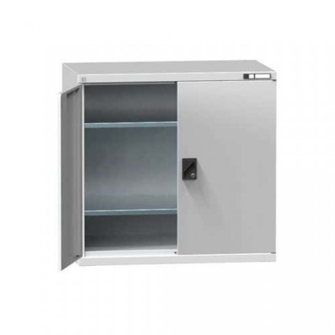 Kovové dílenské skříně s plnými křídlovými dveřmi a úhlem otevření 180°. Stabilní konstrukce z ocelových plechů. Součástí jsou dvě výškově nastavitelné police v rastru 25 mm. Skříně jsou navrženy mimo jiné pro použití závěsného programu a zásuvek velikosti 54 x 27D. Dveře lze uzamknout pomocí zámku s dvoubodovým zamykacím systémem s tichým chodem. Nosnost skříně je 300 kg.Kovové dílenské skříně na nářadí SK1, 1000 x 1044 x 625 mm, 2 police, šedá