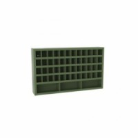 Kovové dílenské skříně s přihrádkami jsou vyrobeny z ocelového plechu o tloušťce 0,8 mm. Skříně obsahují 48 přihrádek s rozměry 121 x 109 x 250 mm a 3 přihrádky s rozměry 175 x 466 x 250 mm. Vhodné jsou zejména pro ukládání dílenského materiálu (např. nářadí) v dílnách, garážích apod. Vysoká odolnost proti korozi díky povrchové úpravě práškovým lakem. Dodáváno ve smontovaném stavu.Kovové dílenské skříně s přihrádkami SFR511, 90 x 150 x 25 cm
