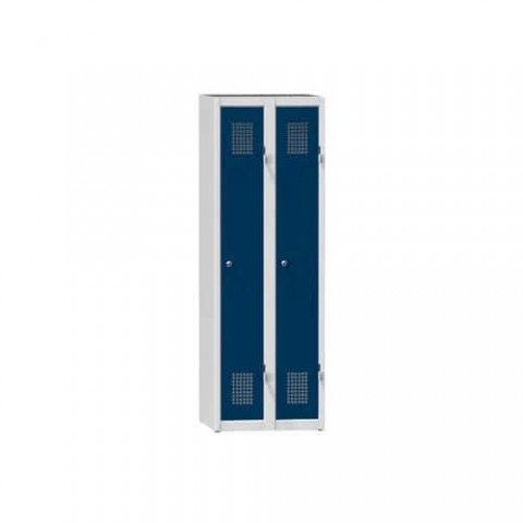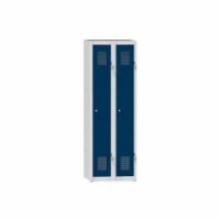 Základní provedení dostupné ve třech výškách – 1200, 1500 a 1850 mm. Variantami jsou skříně jednodvéřové, dvoudvéřové a třídvéřové. Šatníky jsou standardně vybaveny cylindrickým zámkem, dvěma klíči a třemi plastovými háčky. Plechová šatní skříň převážně pro základní školy. Dveře jsou celoplošně vyztužené a pevné v krutu a ohybu. Dveře jsou zavěšeny na kovových pantech originální konstrukce s úhlem otevření 180°. Police ve spodní části skříňky. Cylindrický zámek se dvěma klíči.Kovové šatní skříně 2-dvířkové na soklu, 500 x 500 x 1500 mm