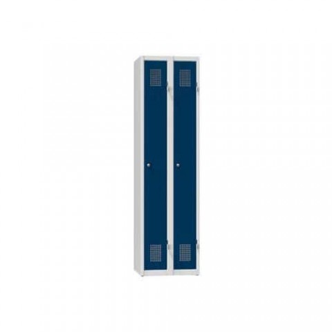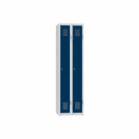 Základní provedení dostupné ve třech výškách – 1200, 1500 a 1850 mm. Variantami jsou skříně jednodvéřové, dvoudvéřové a třídvéřové. Šatníky jsou standardně vybaveny cylindrickým zámkem, dvěma klíči a třemi plastovými háčky. Plechová šatní skříň pro široké použití. Dveře jsou celoplošně vyztužené a pevné v krutu a ohybu. Dveře jsou zavěšeny na kovových pantech originální konstrukce s úhlem otevření 180°. Police v horní části skříňky. Cylindrický zámek se dvěma klíči.Kovové šatní skříně 2-dvířkové na soklu, 800 x 500 x 1850 mm