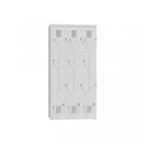 Kovové šatní skříně typu Z jsou dostupné ve výšce 1 850 mm. Každý oddíl je opatřen větrací mřížkou pro lepší cirkulaci vzduchu. Šatníky jsou standardně vybaveny cylindrickým zámkem, dvěma klíči a třemi plastovými háčky. K dostání ve 3 barevných variantách.Kovové šatní skříně, dveře Z, 6 oddílů, 1850 x 900 x 500 mm, šedá